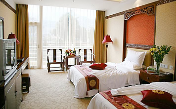 酒店大堂面积大约800平方米,设有大堂吧、商务中心、商品部。大堂以仿唐皇室装饰为主,无论字画、雕刻、摆设都将把您引入怀古思幽之遐想。