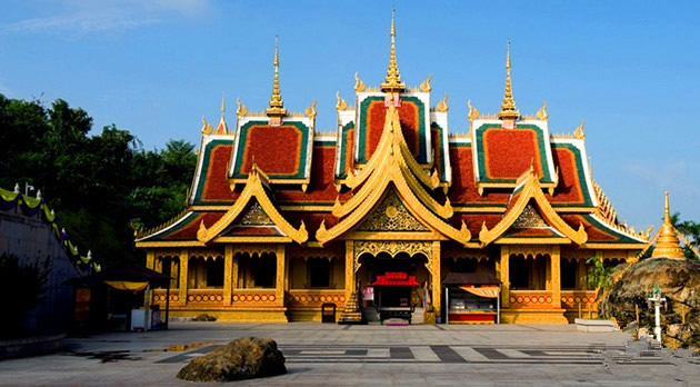 勐泐大佛寺位于云南省西双版纳傣族自治州州府景洪市城郊,按照国家AAAA级景区标准打造。勐泐大佛寺是在古代傣王朝的皇家寺院“景飘佛寺”的原址上恢复重建的,“景飘佛寺”是傣族历史上一位名叫拨龙的傣王为纪念病故的王妃南纱维扁而修建。王妃一生信奉佛法,所以每逢节日傣王就亲临寺院,举行大型法会,以纪念爱妃同时弘扬佛法。据史料记载:“景飘佛寺”始建于明代,是南传佛教象征十二版纳的标志性建筑之一,也是版纳佛教活动的重要场所。该建筑在佛历2883年(即公元1848年,清咸丰年间)战争中被毁,距今已有169年。佛寺于2005年开始重建,于同年3月9日举行了大型的土地开光仪式,于2005年5月9日举行了盛大的大殿奠基开光仪式,在大殿施工时,挖掘出大量的银币、银盒、佛教法事用品等。佛寺于2007年11月3日一期工程竣工,竣工之时,邀请了海内外108位高僧为佛寺举行了盛大的开光大典,州内外参加开光大典的各民族佛教信众达65万人之多。 占地面积400亩,佛寺依山而建,落差达122.8米,呈坐佛形,为国内外所独有。景区以佛祖释迦牟尼的生平及佛寺活动为主线,巧妙融入到景观及建筑群体中,充分展示南传佛教的历史与传统文化色彩。从万佛塔前广场俯视景洪市区,旖旎的热带风光尽收眼底。
