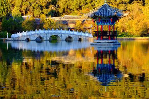 国内名为“黑龙潭公园”的景区以丽江黑龙潭最为有名。丽江黑龙潭公园也叫玉泉公园,位于丽江古城北象山脚下,从丽江古城四方街沿经纬纵横的玉河溯流而上,约行一公里有一处晶莹清澈的泉潭,即为中外闻名的黑龙潭。是丽江金沙旅游网重点推荐的丽江旅游景点之一, 丽江黑龙潭公园俗称龙王庙,位于丽江古城北端象山之麓,黑龙潭内随势错落的古建筑有龙神祠、得月楼、锁翠桥、玉皇阁和后来迁建于此的原明代芝山福国寺解脱林门楼、五凤楼,原知府衙署的明代光碧楼及清代听鹂榭、一文亭、文明坊等建筑。