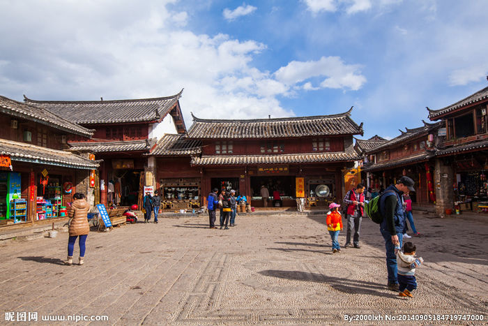 进入束河村,你可直抵束河中心集市,在这里你会有一种似曾相识的感觉,这是一个类似大研镇古城四方街的广场,面积约250平方米,亦称束河四方街,赶集的日子里异常热闹,曾是丽江皮毛交易集散之地。广场四周均为店铺,古老的木板门面,暗红色油漆。还有店前黑亮的青石,脚下斑驳的石坡路面,以及闲坐的老人,勾勒出束河古朴自然本色。站在广场中心,你细细观察体会,大研古城四方街完全是束河的翻版,纳西民族由游牧向农耕,再走向城市,从这里你可找出一些痕迹。沿束河街北走100米,便可找到溪流的源头“九鼎龙潭”,潭水透明清澈,日夜涌泉,束河人奉为神泉,于是建有龙泉寺。